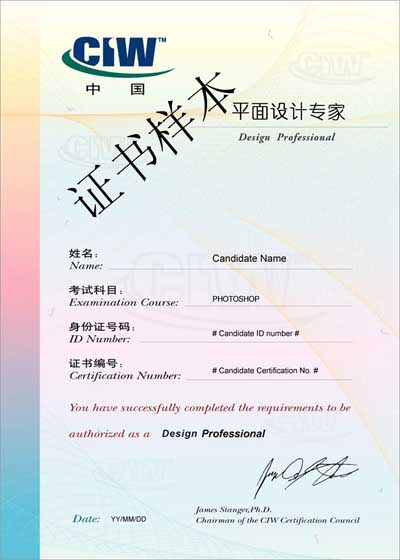 注:以上每門課程通過后可獲得美國 VCampus 公司頒發的網頁設計類分證書一張,通過三門(Fireworks 與 Photoshop 任選一門)后可獲得 CIW 網頁設計師總證書。
