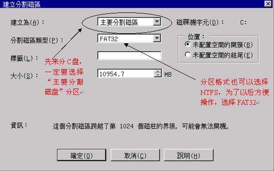 1、創(chuàng)建分區(qū)--創(chuàng)建C盤(主要分區(qū))