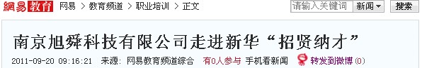 據南京旭舜科技有限公司總經理彭先生介紹,本次來新華招聘員工,主要是看中新華學子的技能精湛,素質高等特點。為了加強公司網絡營銷隊伍,為讓新華畢業學子畢業即就業,公司還將免費對學員進行上崗職素強化。
