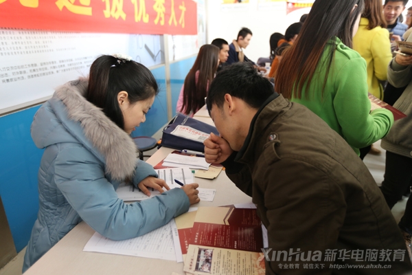 安徽新華電腦專修學院2014冬季系列招聘會現場,學子臉上洋溢著開心的笑容