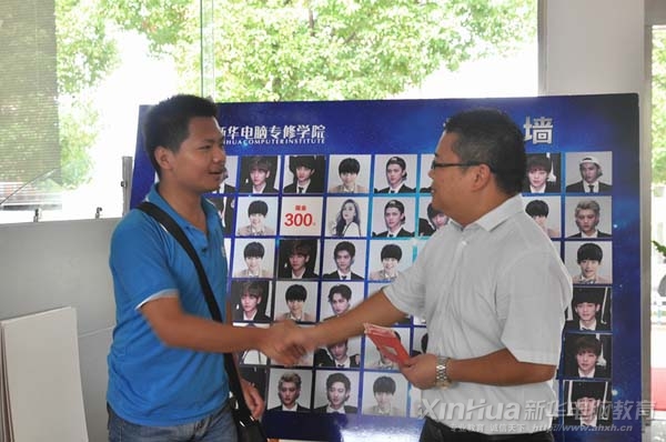 清早,一批批新生迎著晨曦步入安徽新華的校園,在老師的帶領下參觀了解“互聯網+”各大實訓基地并在咨詢中心現場輪流進行電腦抽獎而作為當天第一個報名的新生——網絡營銷工程師專業的黃坤同學一舉在明星抽獎墻上抽中大獎,當院長親自為黃同學發紅包并握手表示祝賀時,黃坤及家人臉上的喜悅之情也溢于言表。