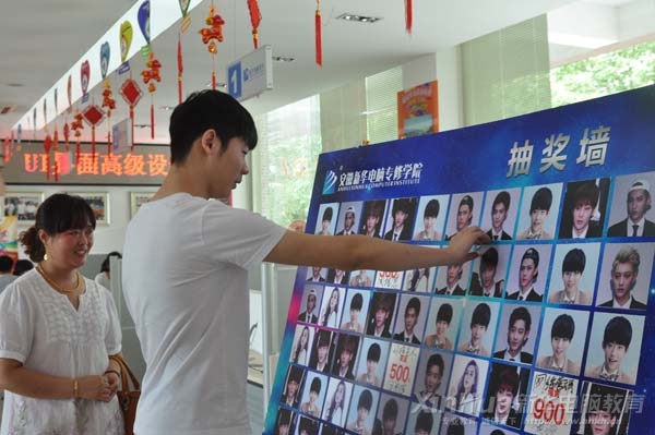值得一提的是,報讀廣告傳媒專業的任佳樂同學放棄了自己親自抽獎的機會,記者事后了解到,原來任同學是讓自己的班主任代替自己抽獎,短短時間內,新生和班主任間建立起的深厚感情和信任離不開安徽新華“愛與責任”的人文關懷。班主任表示,學生這么相信我,我很榮幸,可是墻上的明星我只認識angelbaby于是就抽中了她,沒想到一下子抽中大獎,倒也沒有辜負學生的期望。據悉,當天報名并參與抽獎的幾十名學子都在報名的第一天抽中大獎討到了好彩頭,并和親切的吳院長合影留戀,制造了珍貴的回憶。