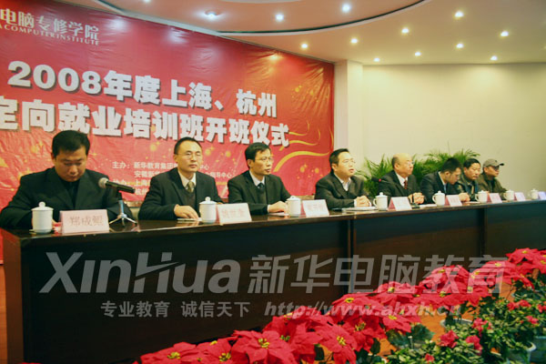 為讓學(xué)子能夠輕松就業(yè),安徽新華電腦專修學(xué)院響應(yīng)國家號召,積極探索就業(yè)服務(wù)工作新渠道。12月20日,由安徽新華電腦專修學(xué)院與上海、杭州兩地11家用人單位聯(lián)合舉辦的“2008年度上海、杭州定向就業(yè)培訓(xùn)班開班儀式”在新華隆重舉行。新華教育集團(tuán)領(lǐng)導(dǎo)、學(xué)院領(lǐng)導(dǎo)及眾多用人單位代表出席了儀式并與現(xiàn)場300余名師生一同見證這一成果。
