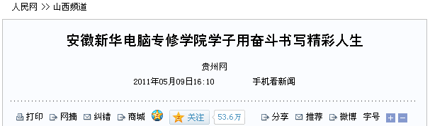 2011年,國內知名教育機構新華電腦教育舉辦了“奮斗的青春”之杰出校友愛心接力大型公益評選活動。活動一經開展,就得到了眾多全國新華校友的熱烈響 應,數萬名新華學子積極投送個人自薦材料。一時間,在全國掀起了一股“青春奮斗”的熱潮,通過此次活動新華電腦教育將從眾多的優秀學子中評選出:卓越獎、 特殊貢獻獎和成就獎等多個獎項,為年輕人樹立典范,以此來激勵更多的自強不息、艱苦奮斗,創造美好未來。活動中所獲善款,將來資助更多有志于學習電腦的貧 困學生,幫助他們實現人生理想,以此來回報社會。