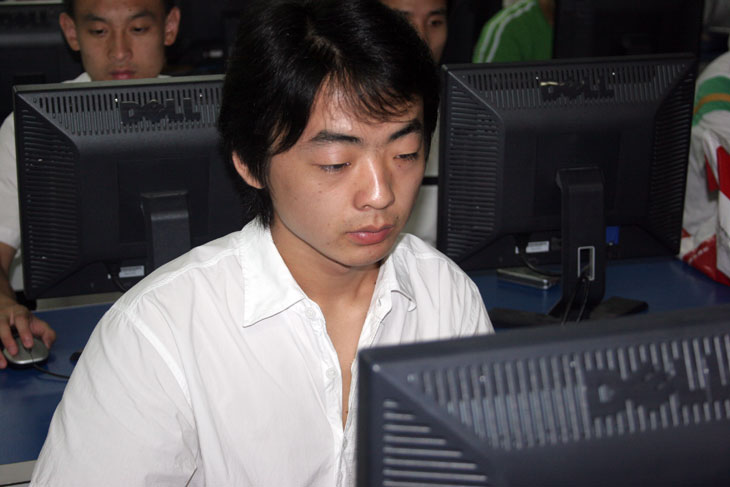 瞿志在機房認真的調試程序