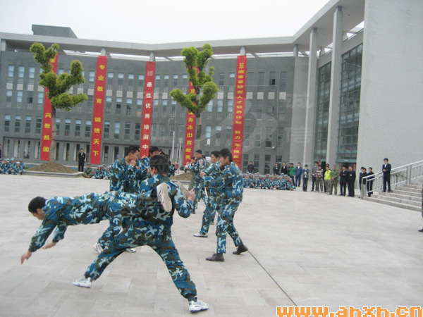 4月2日下午,我院大學部07級新生軍訓匯報表演在大學部廣場前隆重舉行。安徽新華電腦專修學院院長沙旭、副院長束開俊、大學部院長熊振宏、安徽省陸軍高炮團領導和學院各相關部門領導等出席并觀看了本次軍訓匯報表演。