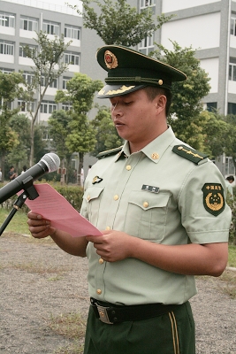 本次軍訓(xùn)得到了學(xué)院領(lǐng)導(dǎo)和部隊(duì)領(lǐng)導(dǎo)的高度重視,安徽新華電腦專修學(xué)院副院長廖光宙和安徽省武警總隊(duì)直屬支隊(duì)中尉曹昆在講話中都指出,軍訓(xùn)不僅是保衛(wèi)祖國的需要,也是建設(shè)祖國的需要!作為將來的建設(shè)者和接班人,必須擁有強(qiáng)健的身體素質(zhì)、團(tuán)結(jié)奉獻(xiàn)的思想素質(zhì)、抵抗困難和挫折的心理素質(zhì)、艱苦樸素的工作作風(fēng)、以及勇于拼搏不怕犧牲的革命精神。希望同學(xué)們能夠全身心地投入到軍訓(xùn)過程中,深刻理解軍人的光榮使命,展現(xiàn)出新華學(xué)子積極進(jìn)取、奮發(fā)向上的精神面貌。