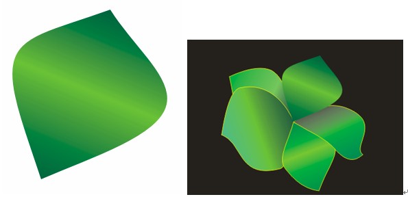 3) 使用貝賽爾工具繪制花朵,并設置漸變色彩,如圖所示: