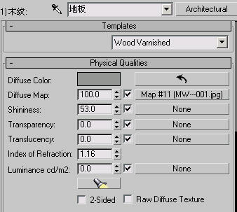 (5)選擇場(chǎng)景中的地板,在材質(zhì)編輯中找到它所對(duì)應(yīng)的材質(zhì),我們以地板為例來(lái)進(jìn)行講解,原始材質(zhì)效果如圖1-3所示。